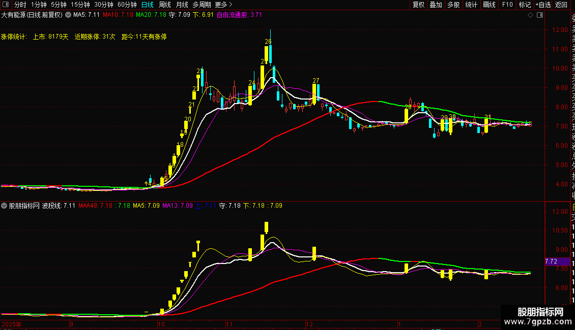 GZT1:=STRCAT(' 近期涨停: ',CON2STR(ZTCS,0));
