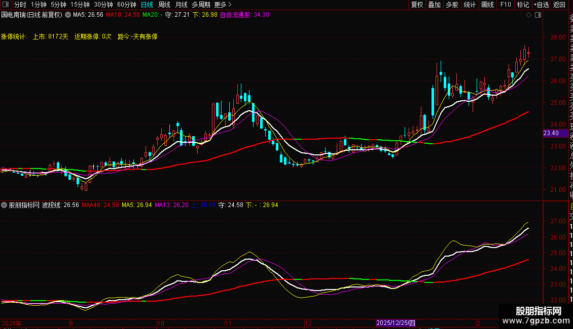波段线:(MA(CLOSE,3)+MA(CLOSE,6)+MA(CLOSE,12)+MA(CLOSE,24))/4,COLORWHITE,LINETHICK2;