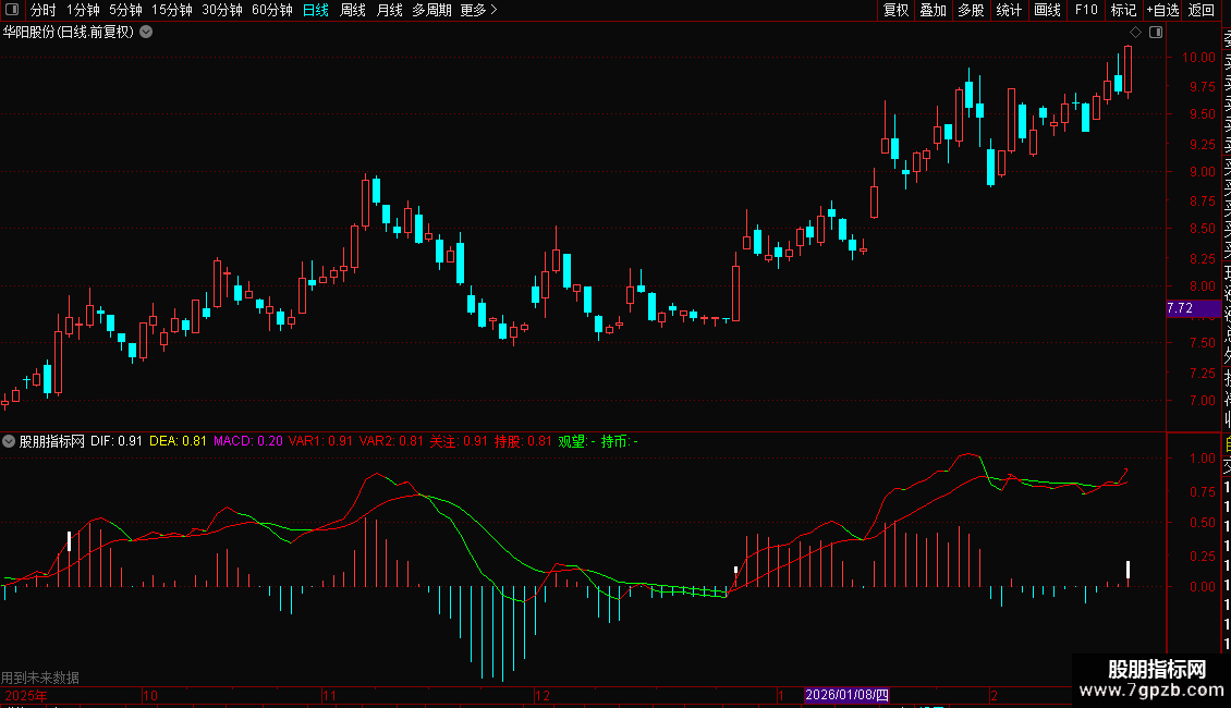 持股:IF(VAR2>REF(VAR2,1),VAR2,DRAWNULL),COLORRED;