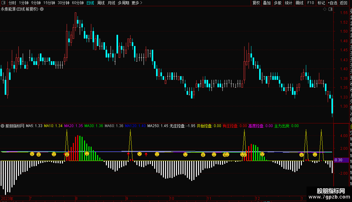 无庄控盘:IF(控盘<0,控盘,0),COLORWHITE,NODRAW;