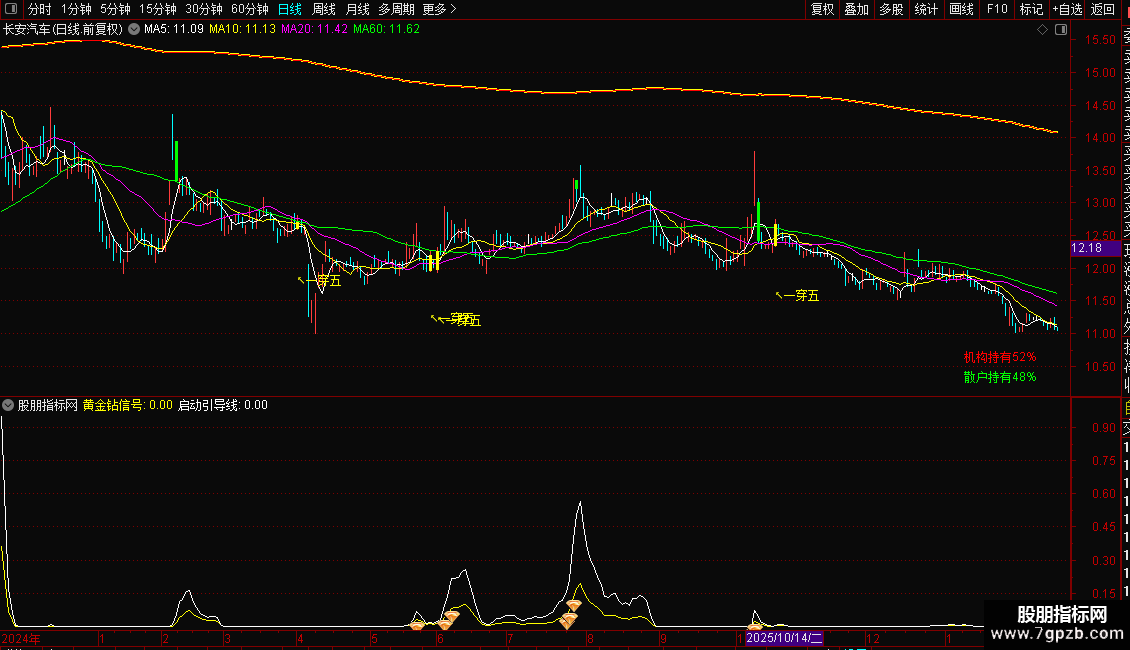 DRAWTEXT(选股,L*0.94,'↖一穿五'),COLORYELLOW;
