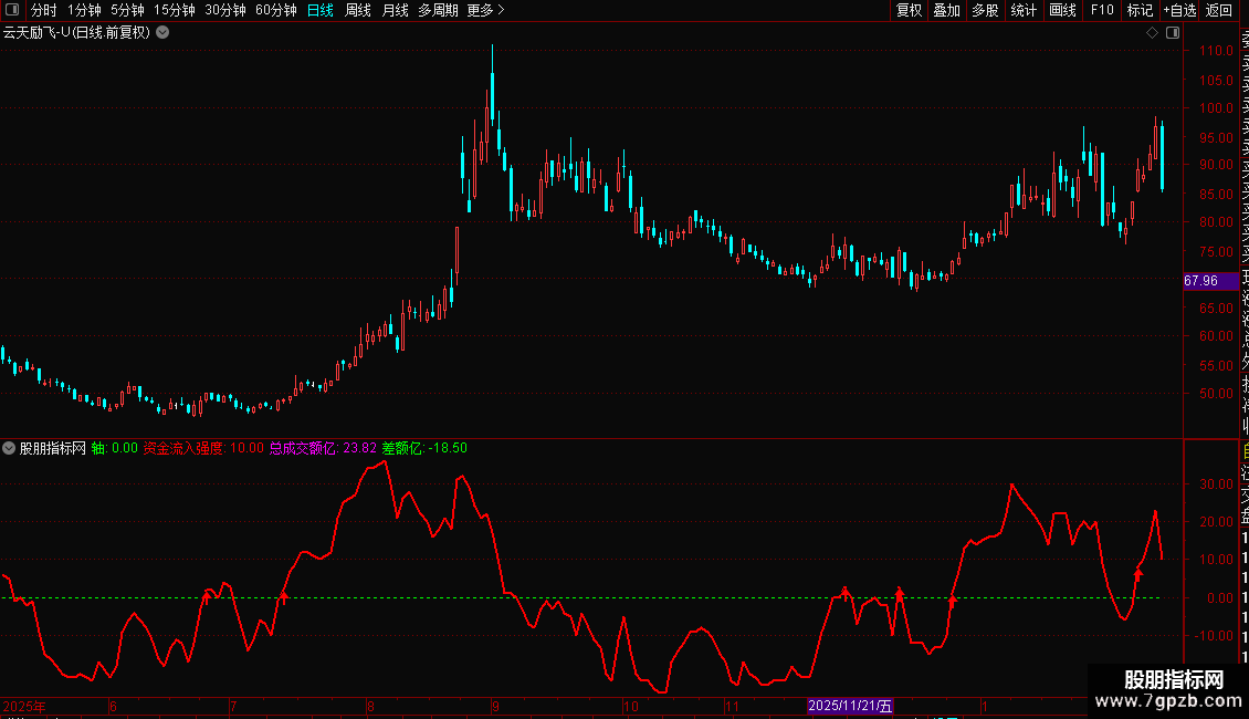 DRAWICON(CROSS(资金流入强度,0),资金流入强度,1);
