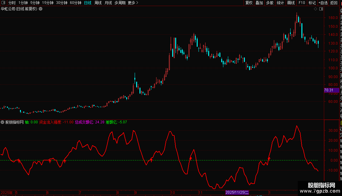 资金流入上穿0轴时买入,资金流入下穿0轴时必须卖出。