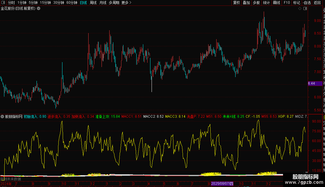 分水岭N1:=IF(MA(CLOSE,100)<BN1,BN1,MA(CLOSE,100)),LINETHICK0;
