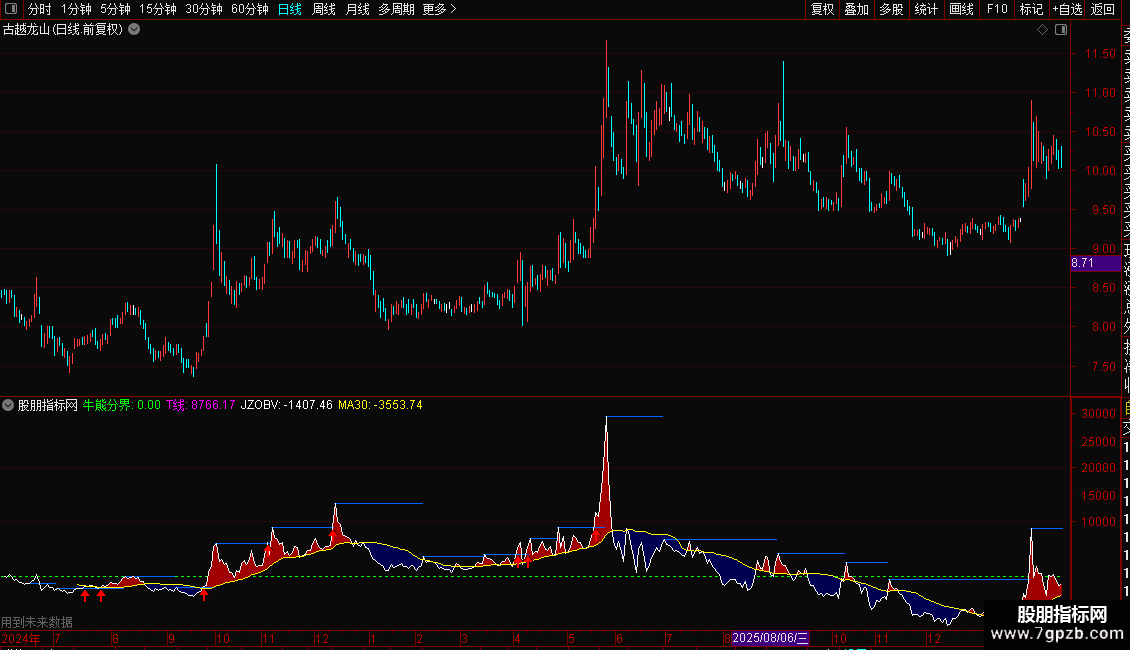 1,0轴是多方市场和空方市场分界线,尽量在 精准OBV为正值时进场交易。