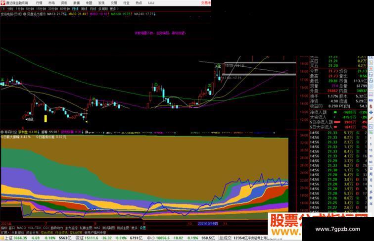 2.筹码通道的宽窄代表筹码集中的程度,长期平衡窄通道,中筹价走平或小幅向上是牛股及妖股必备特征.