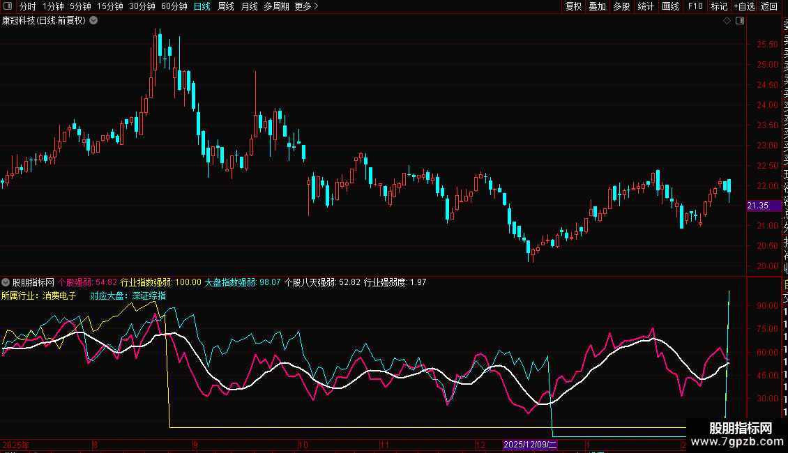 个股八天强弱:MA(个股强弱,8),LINETHICK2,COLORWHITE;