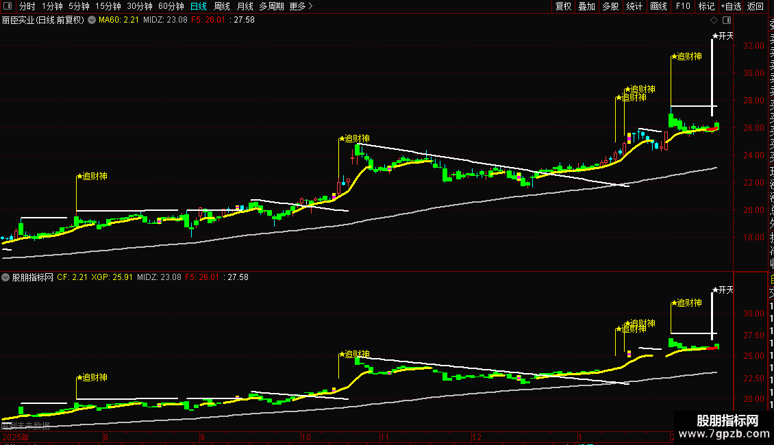DRAWTEXT(XG16,L*1.20,'★追财神'),COLORYELLOW;