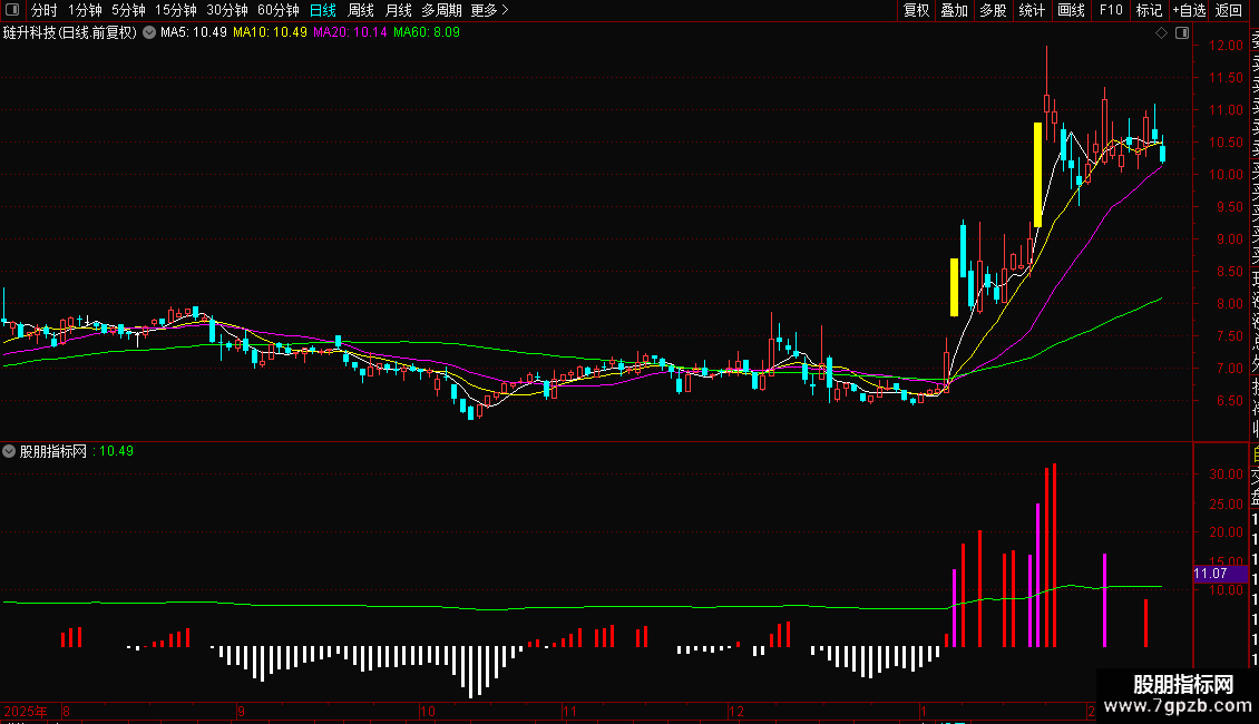 STICKLINE(C>=REF(C,1)*1.098 AND C=H,C,O,3,0),COLORYELLOW;