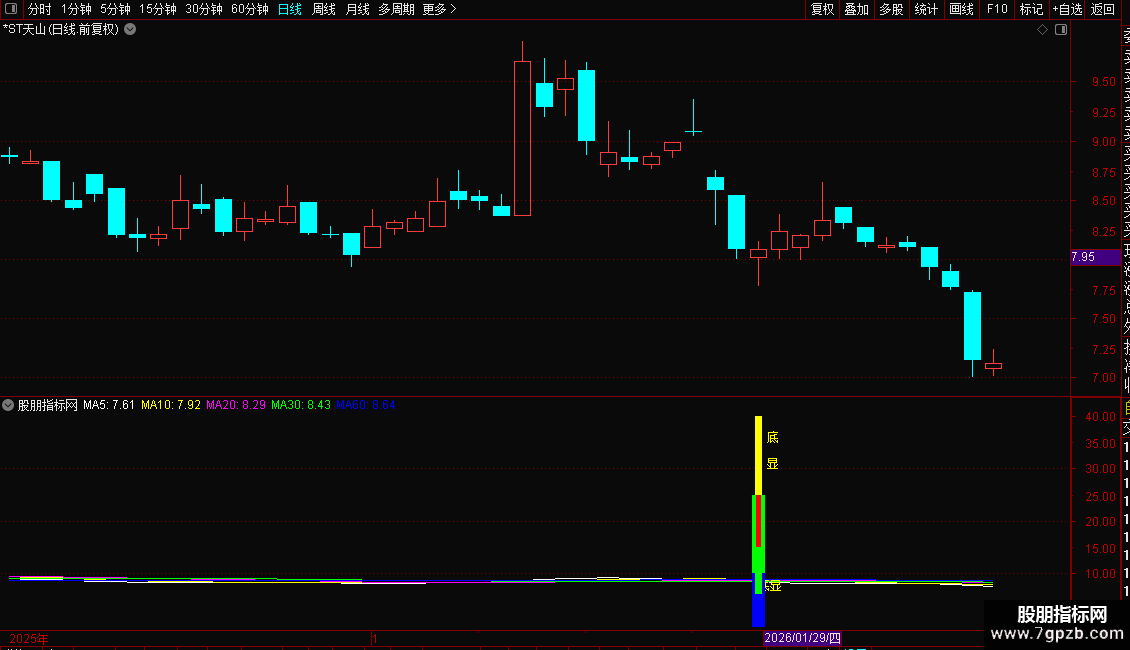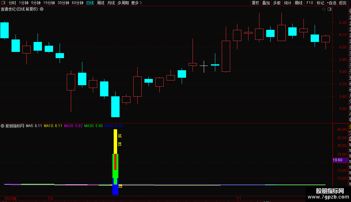 DRAWTEXT(FILTER(DX=1,5),36,' 底'),COLORYELLOW;