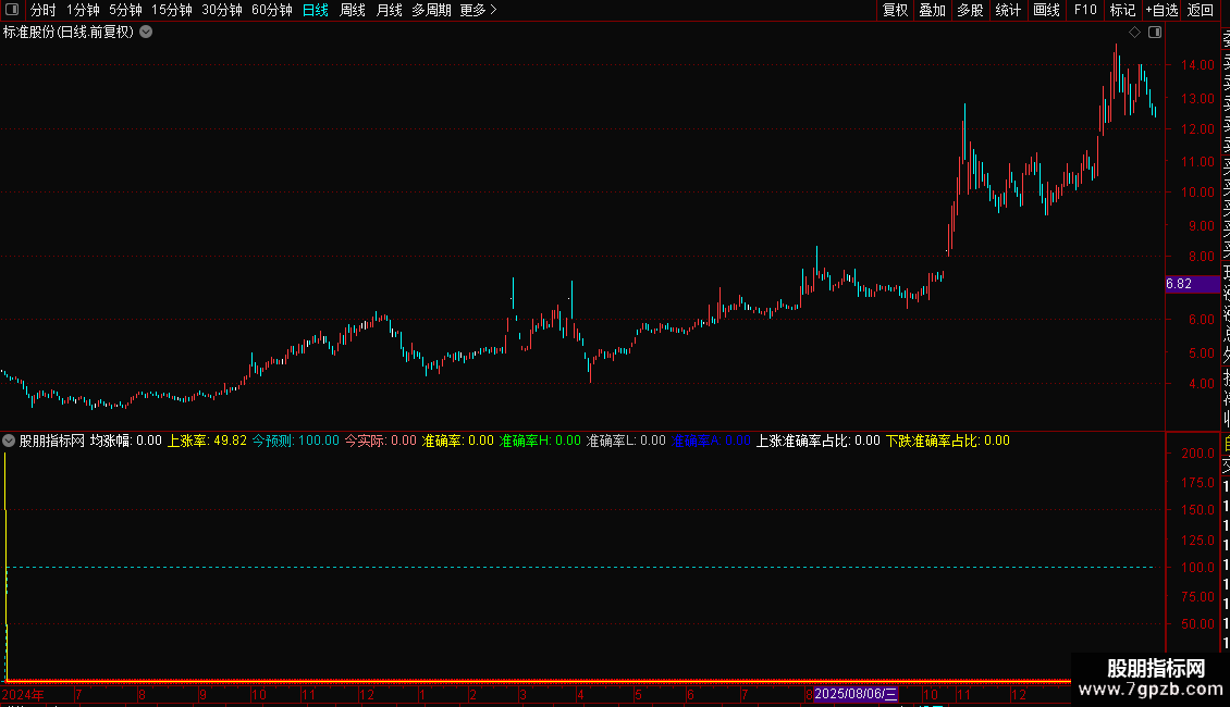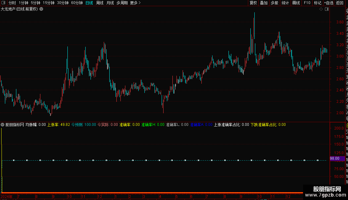 上涨准确率占比:SUM(今预测=100 AND 今实际=100,BC)/SUM(今结果='正确',BC)*100,NODRAW;