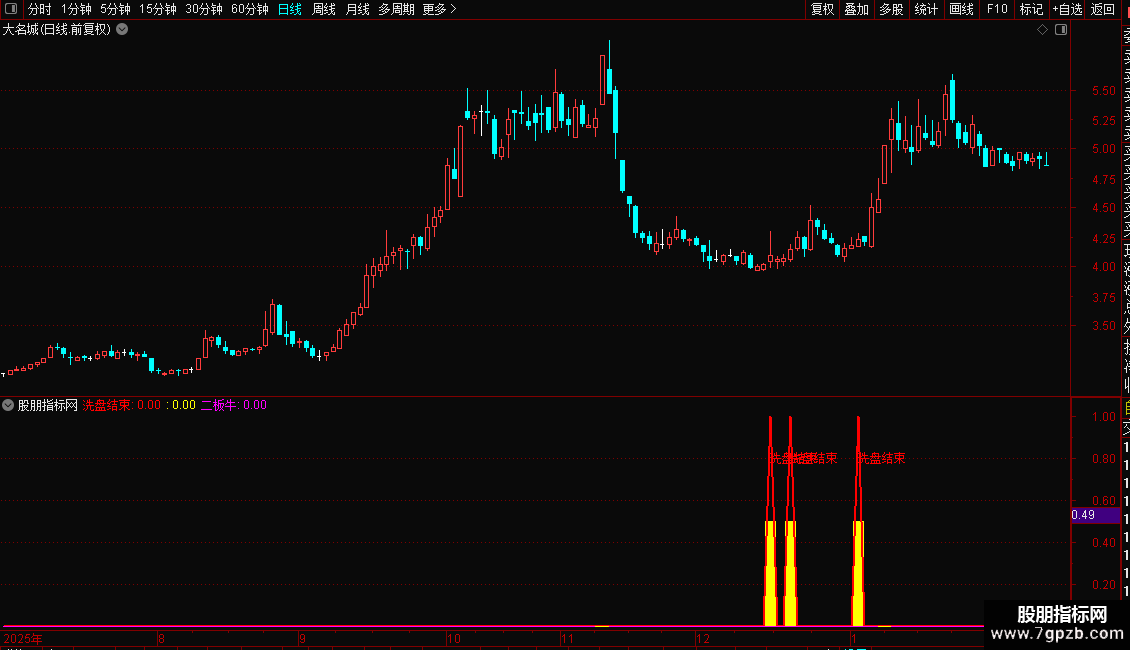 洗盘结束:IF(VAR6,1,0),COLORRED,LINETHICK2;