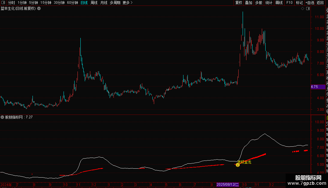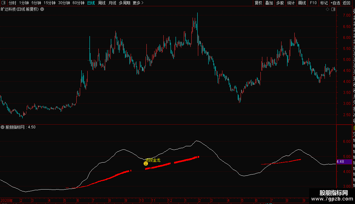 DRAWTEXT(金龙,(L * 1.015),'波段金龙'),COLORYELLOW;