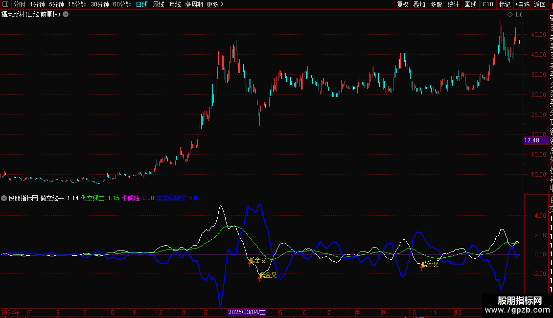 DRAWTEXT(日金叉,做空线一,'低金叉'),COLOR00CCCC;