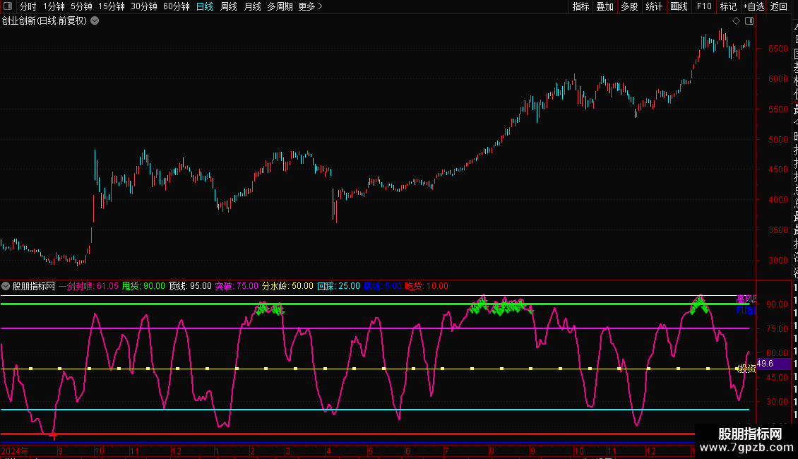 DRAWTEXT(CURRBARSCOUNT=7,93,'高风险区'),COLORF00FF0;