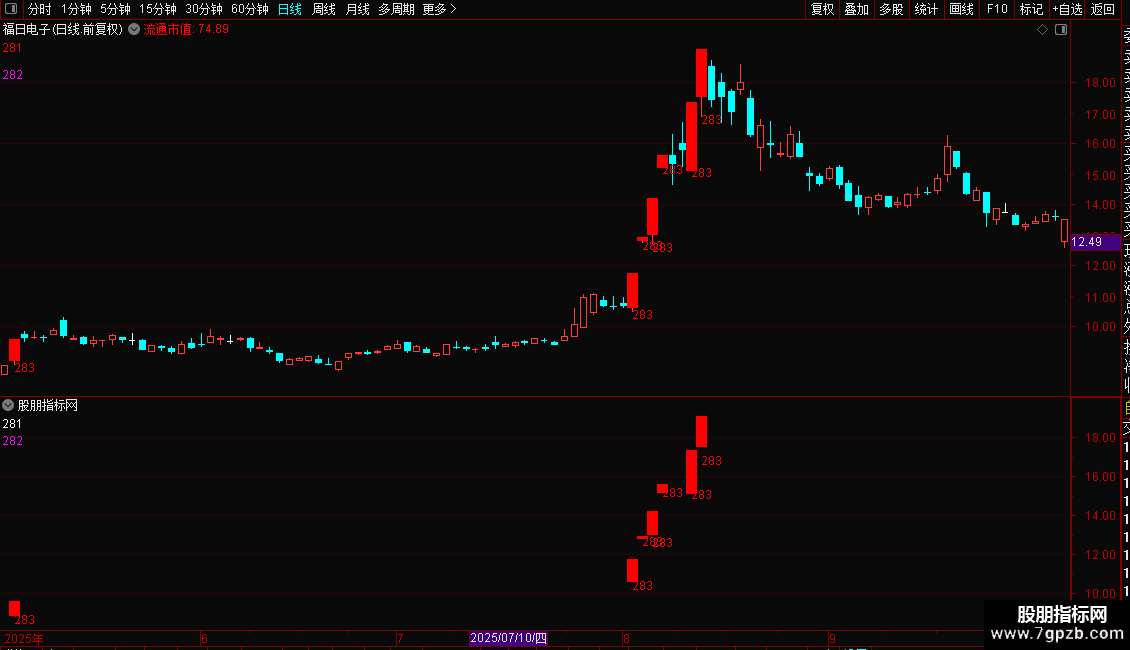 逢低接金:=COUNT(X_6,15) AND X_7>=8 AND X_7<=15 AND LOW<DO AND CROSS(CLOSE,DO);