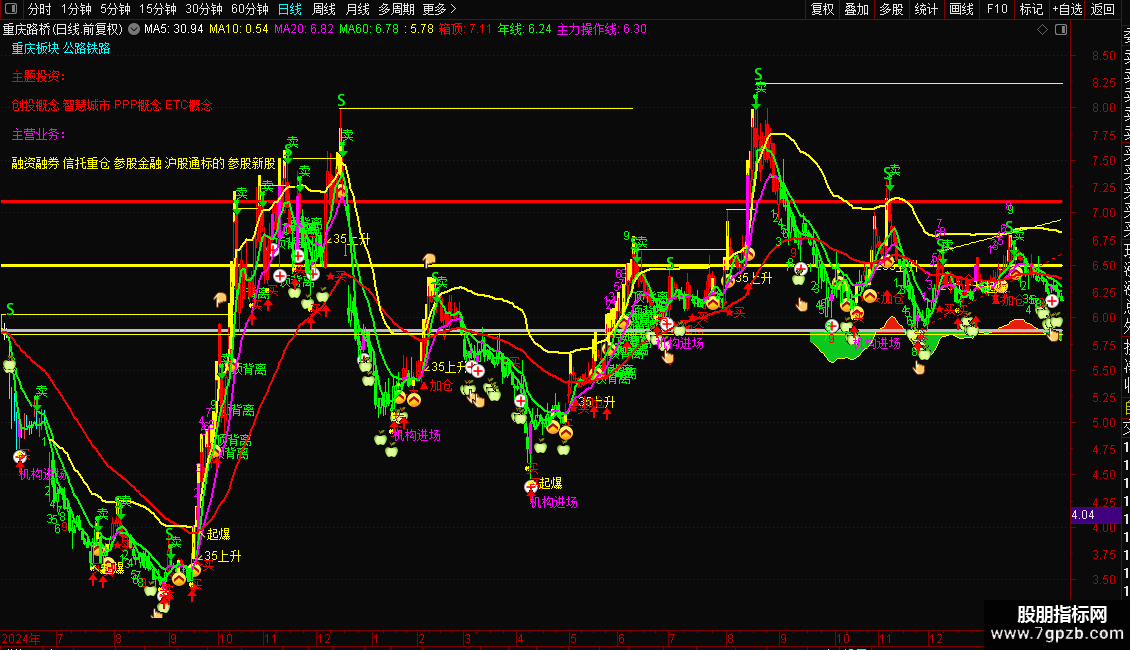 箱腰:IF(X_3>0 AND X_3-X_4<=0,X_7,X_7),DOTLINE,COLORYELLOW,LINETHICK3;