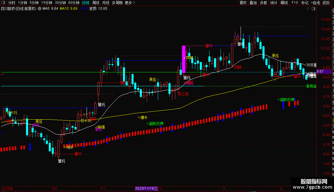 STICKLINE(CURRBARSCOUNT=1,圆底支撑,圆底支撑,300,-1),COLORGREEN;