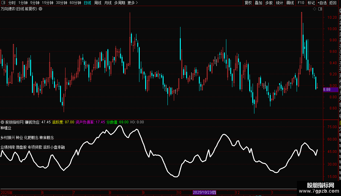 活跃度:IF(SUMBARS(VOL,CAPITAL)<100,100-SUMBARS(VOL,CAPITAL),1),NODRAW;