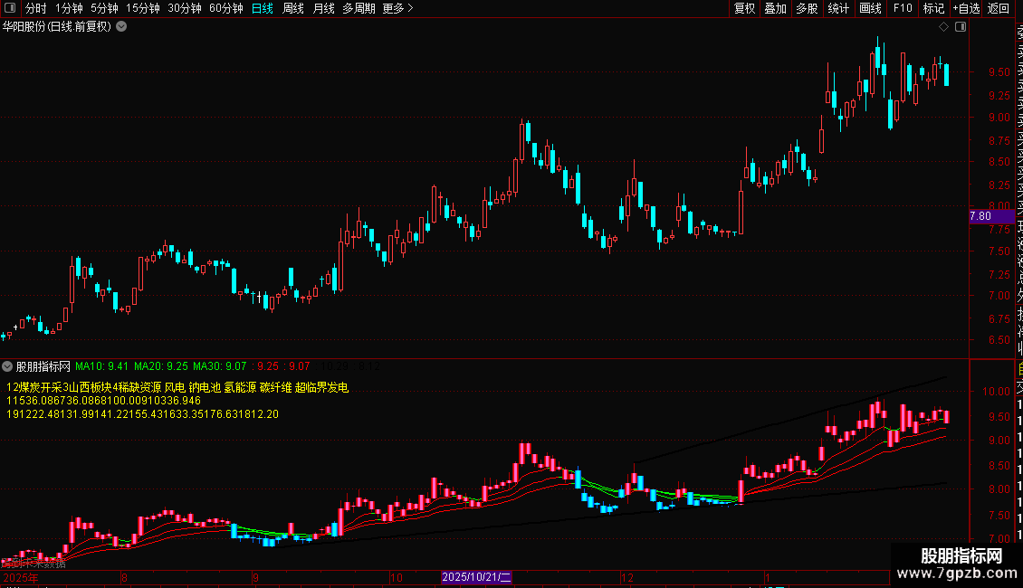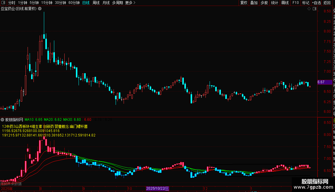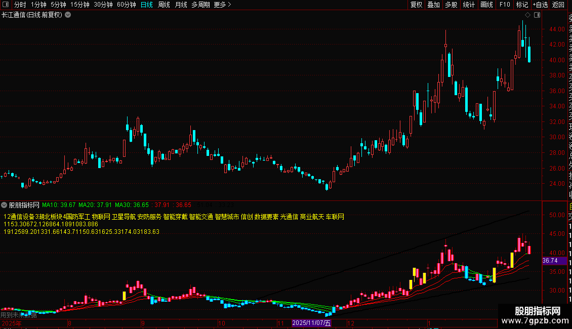 {指标介绍:随着主图10日20日30日k线逐步变红,分步上车;反之,主图10日20日30日k线逐步变绿,分步下车。