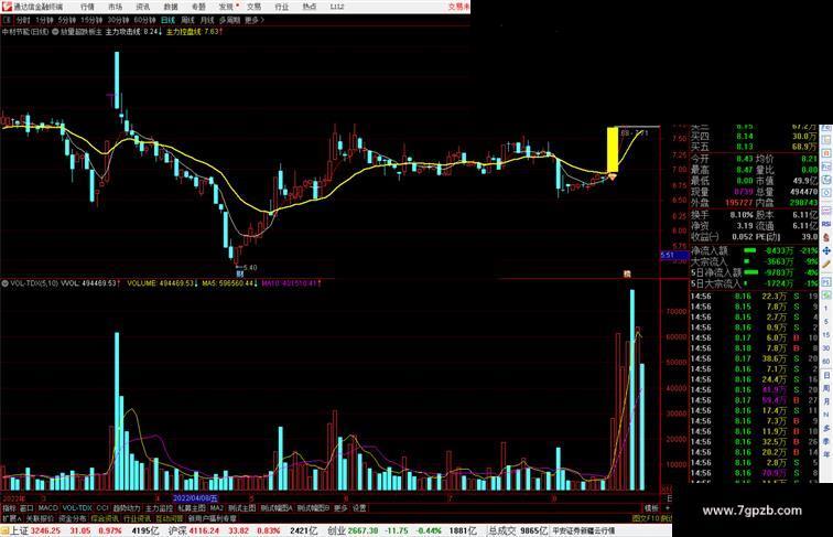 主力控盘线:(MA(CLOSE,5)+MA(CLOSE,10)+MA(CLOSE,15)+MA(CLOSE,20)+MA(CLOSE,25)+MA(CLOSE,30))/6,COLORYELLOW,LINETHICK2;