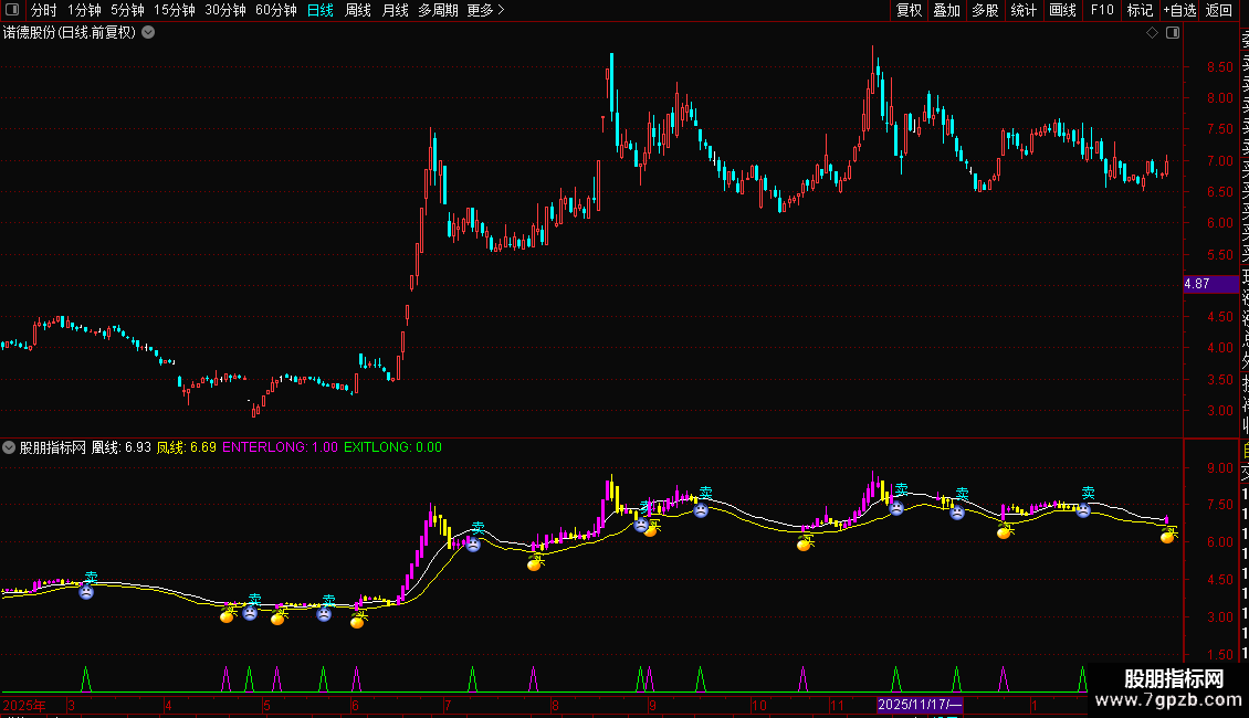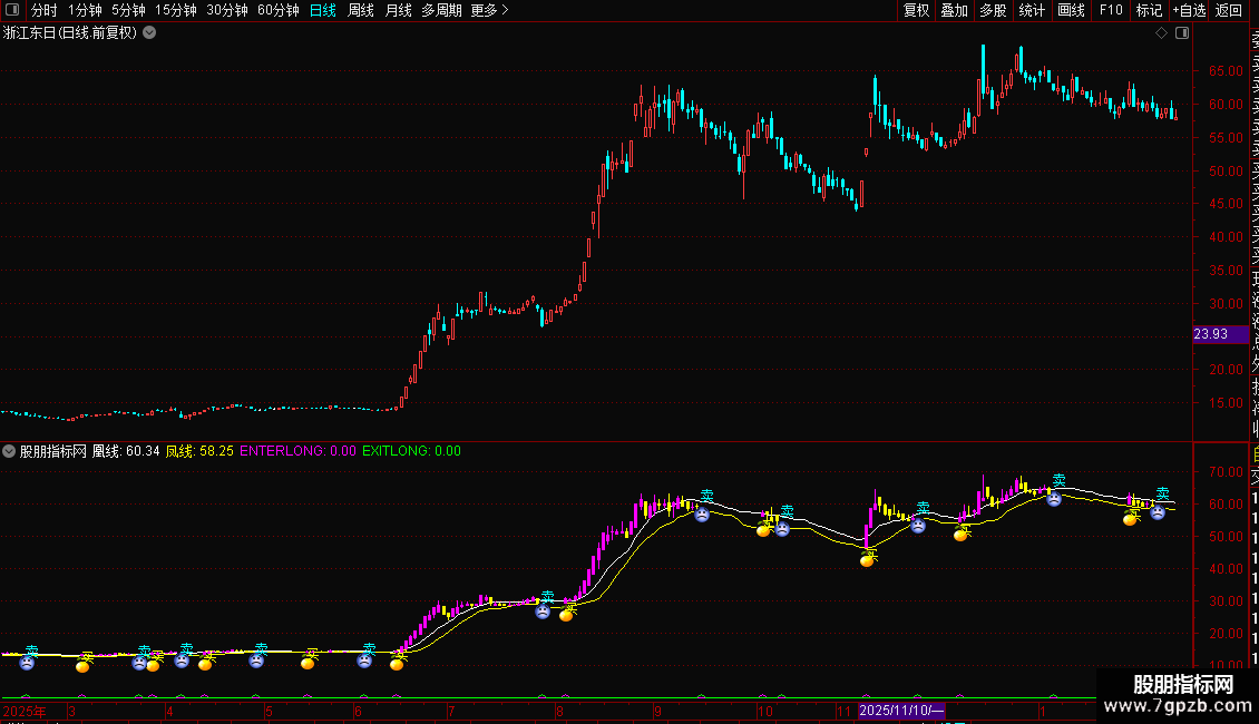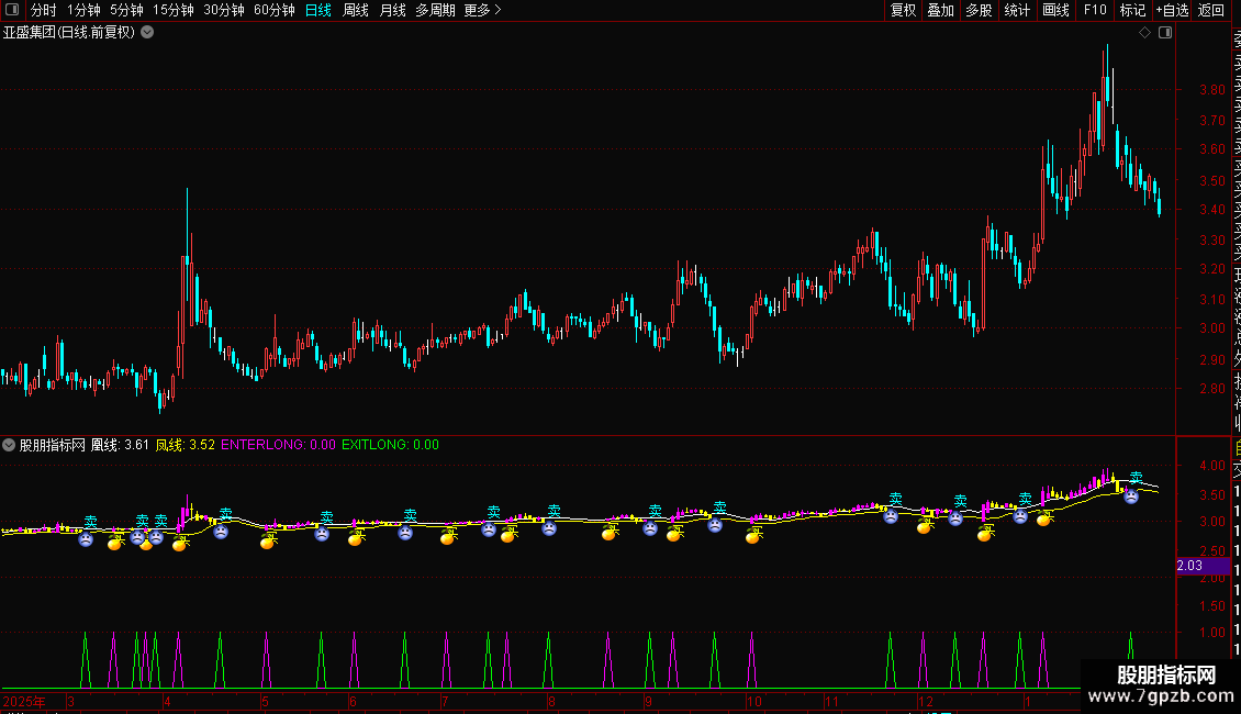 DRAWTEXT(REF(VAR2,1)>VAR1 AND VAR2=0,XHIGH*1.05,'卖'),COLORFFFF00;