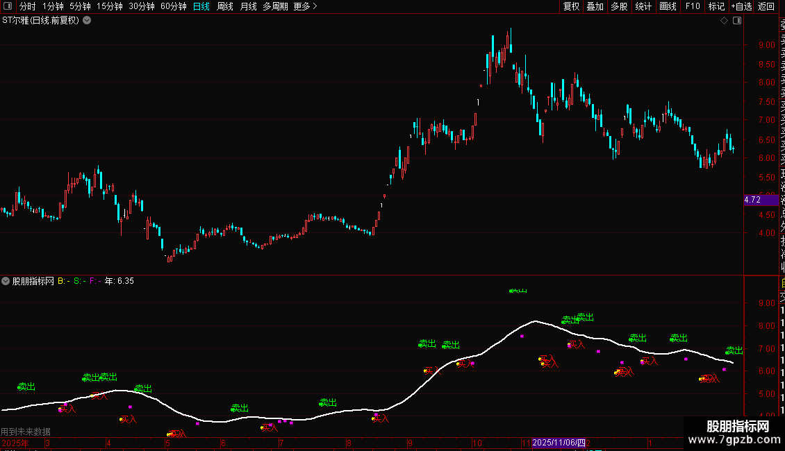 DRAWTEXT(买1>0 OR 买2>0,LOW*0.99,'买入'),COLORRED;