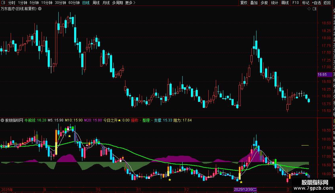 2、绿色牛熊线之上中线看涨,之下看空,清晰明了。