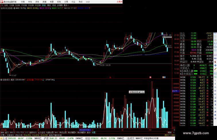 VAR1:=vol/((HIGH-LOW)*2-Abs(CLOSE-OPEN)); 成交:VOL,VOLstICK; 主动买盘:IF(CLOSE>OPEN,VAR1*(HIGH-LOW),IF(CLOSE<OPEN,VAR1*((HIGH-OPEN)+(CLOSE-LOW)),VOL/2)),COLORRED,POINTDOT; 主动卖盘:=成交-主动买盘; ma(主动买盘,1),COLORFFFFFF,LINETHICK2;