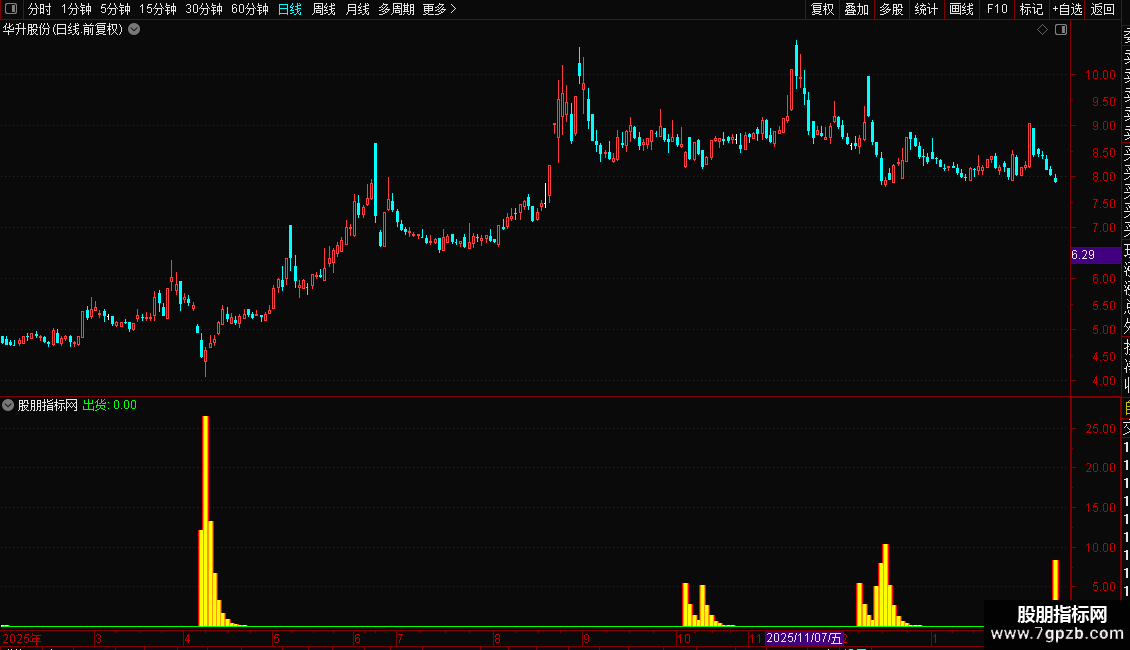 VAR7:=EMA(IF(LOW<=VAR4,(VAR3+VAR5*2)/2,0),3)/618*VAR6;