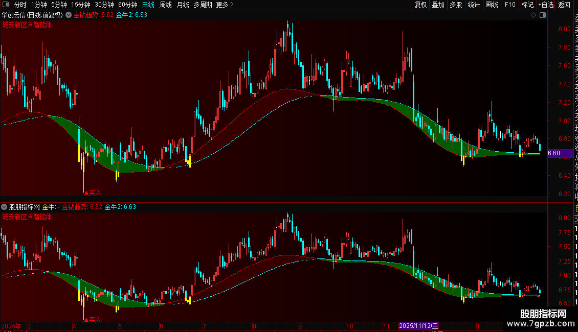 DRAWBAND(金钻趋势,RGB(55,0,0),金牛2,RGB(0,91,0));