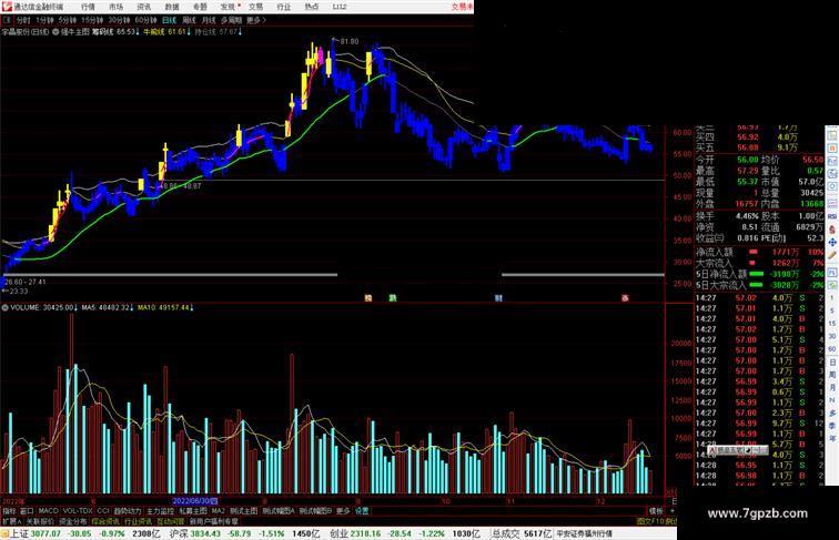 IF(CLOSE>牛熊线,牛熊线,DRAWNULL),COLORMAGENTA ,LINETHICK2;