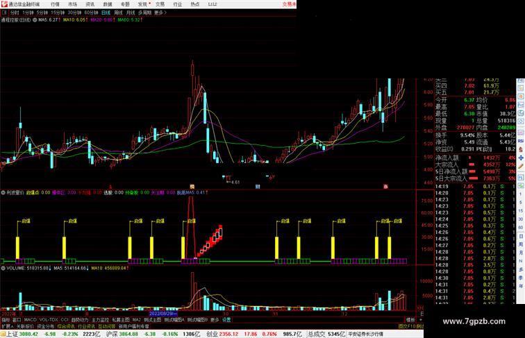 操作区:IF(COUNT(COUNT(强弱度>0,3)>=1,QBSJ)>=QBSJ-1,3,0),COLORFF00FF,POINTDOT,NODRAW;