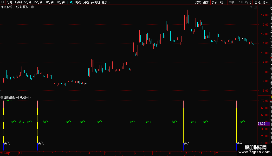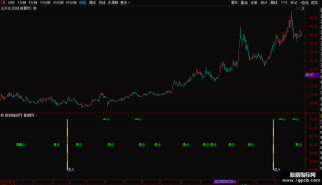 DRAWTEXT(CROSS(40,做多线),40,'清仓'),COLORGREEN;