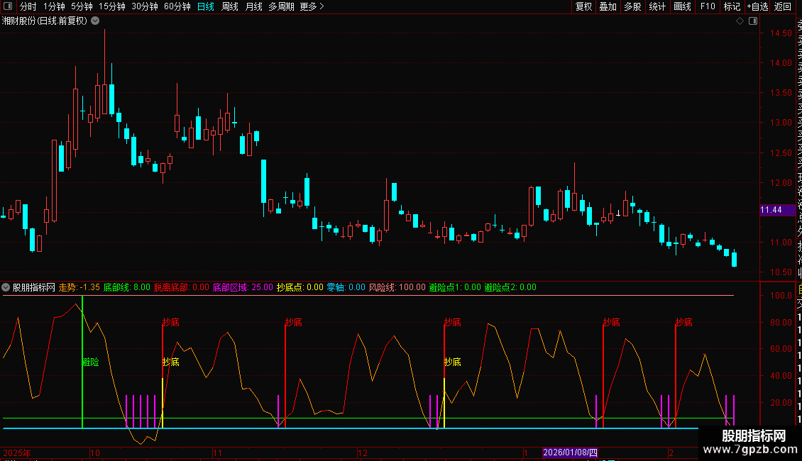 底部区域: IF(走势<=8,25,0),STICK,COLORMAGENTA,LINETHICK2;