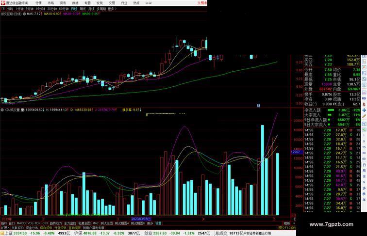 通达信KDJ成交量 副图,就是KDJ+成交量的组合指标公式