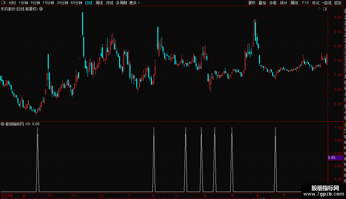 分水岭:=IF(MA(CLOSE,17)<B,B,MA(CLOSE,17)),COLORFF00FF,LINETHICK1;