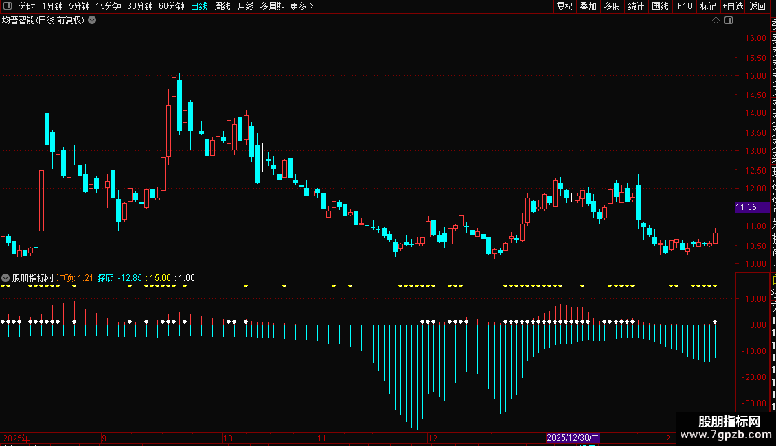 冲顶差值:=1.5*(冲顶-REF(冲顶,1)),COLORYELLOW;