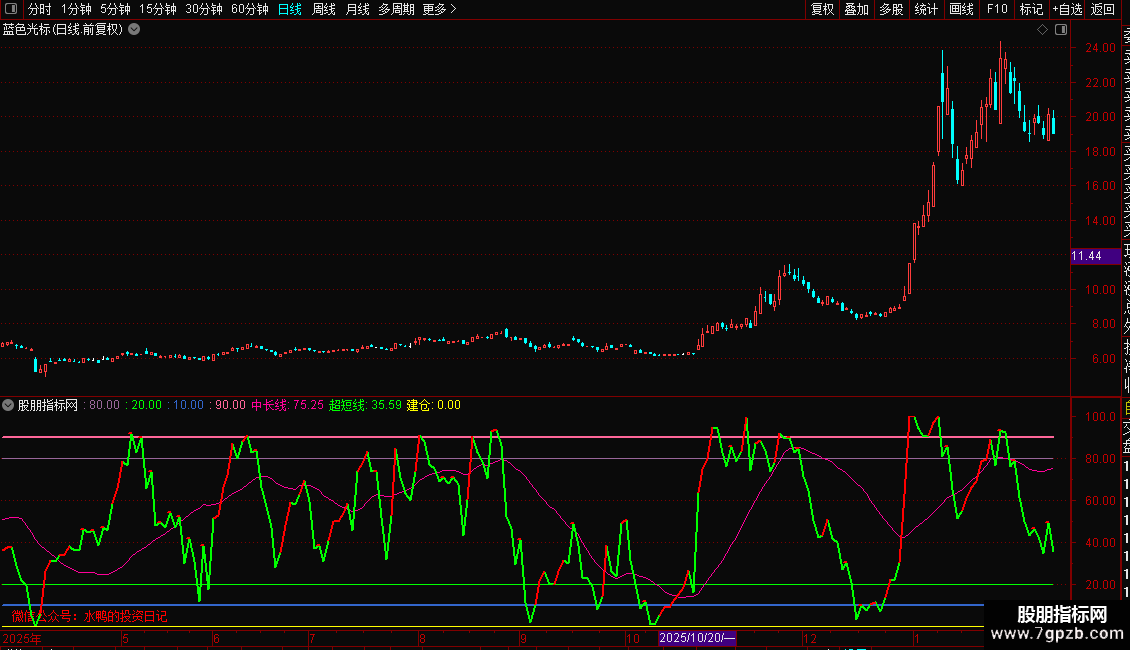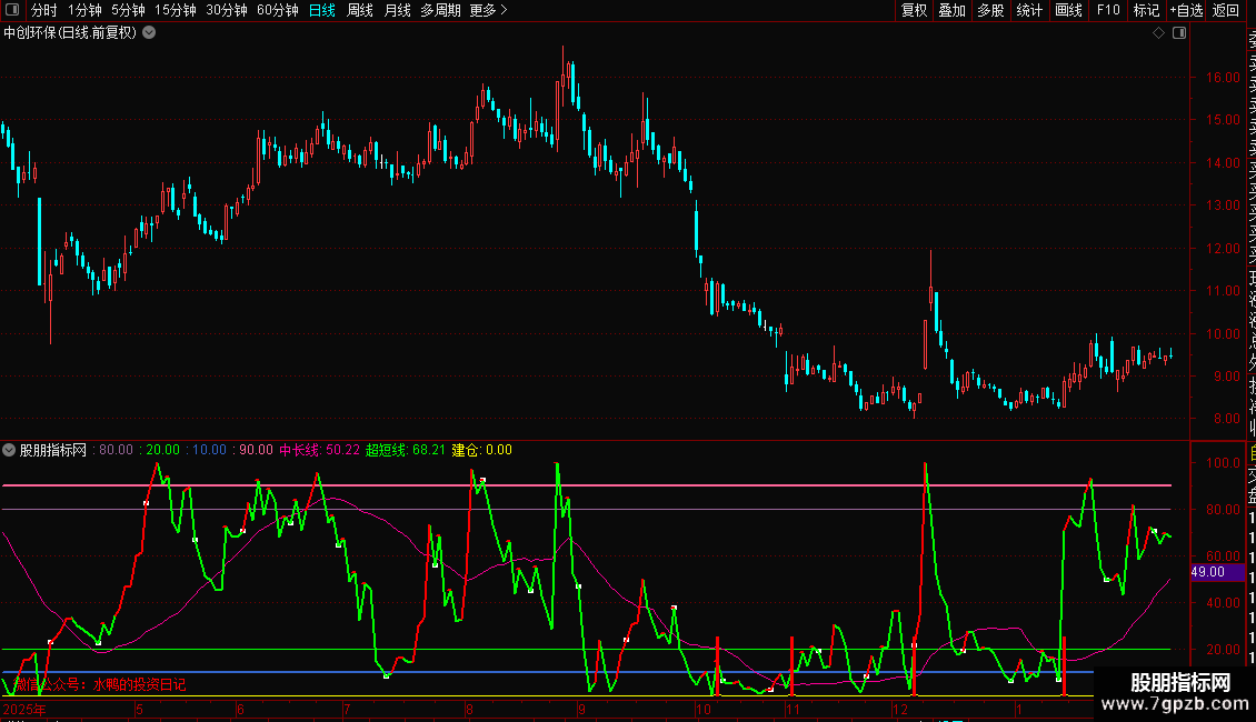 DRAWTEXT_FIX(C>O,0.01,0.9,0,'微信公众号:水鸭的投资日记'),COLORRED;