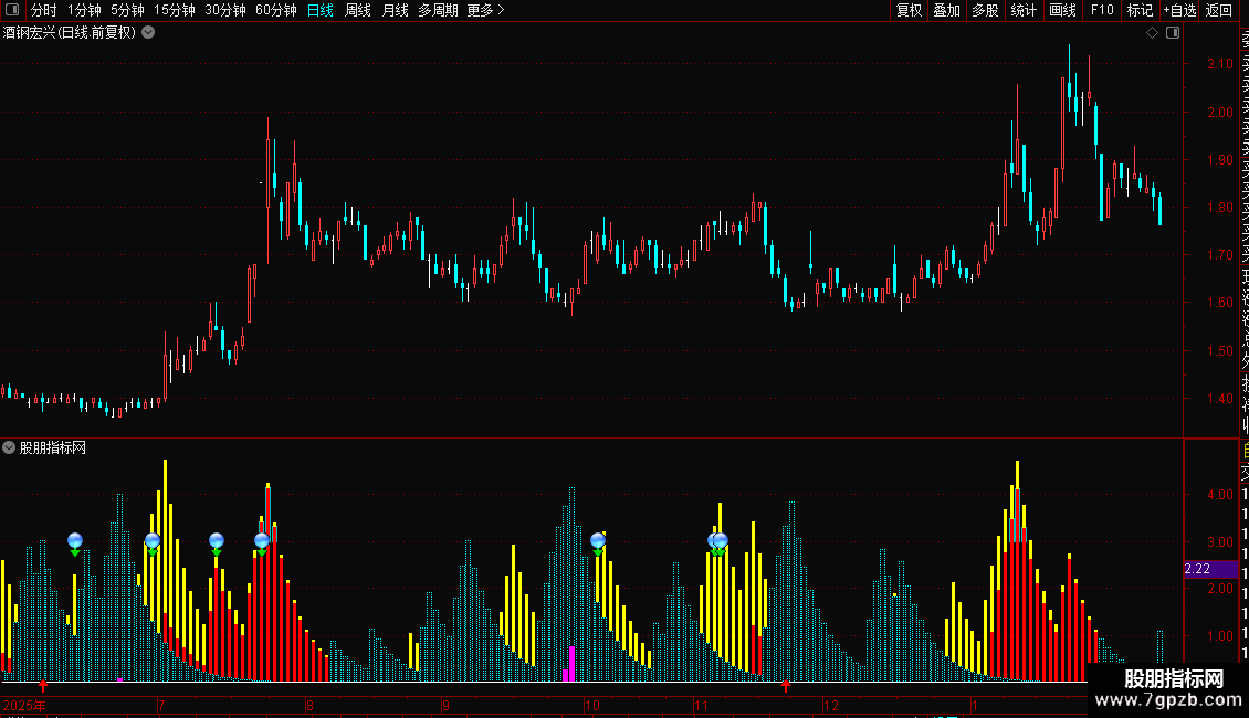 指标是一个多空动能与背离提示的复合型副图指标。