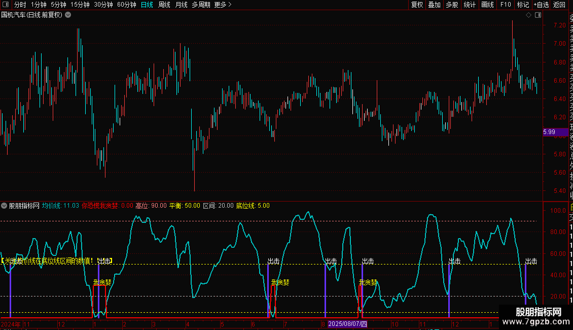 1. 核心信号:指标会在副图上绘制彩色柱状线,并标注“出击”文字,提示可能的买入点。