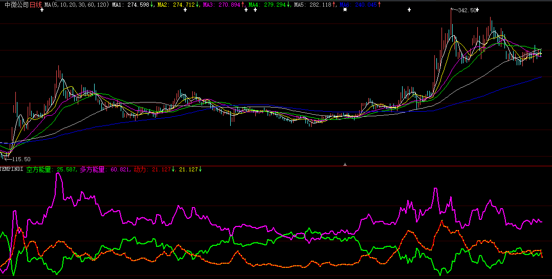 本指标在一个群里看到别人的,特意花钱买下来的,希望对大家有帮助,做空能量一直维持在零点几的个股要关注一下,这是我的体会,配合自己的其他指标使用,会有很好效果