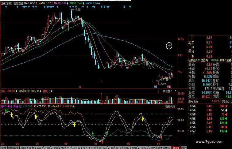 顶背离:=REF(CLOSE,A1+1)<CLOSE AND REF(K,A1+1)>K AND CROSS(D,K) AND 多空<D;