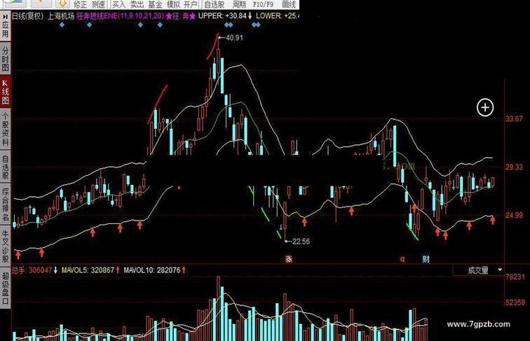 超卖:IF(CLOSE<LOWER AND CLOSE<UPPER,超卖a,DRAWNULL),colorgreen,LINETHICK2;