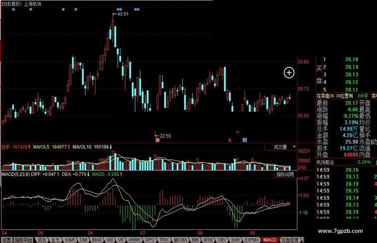 4.分析MACD柱状线,由红变绿(正变负),卖出信号参考;由绿变红,买入信号参考。