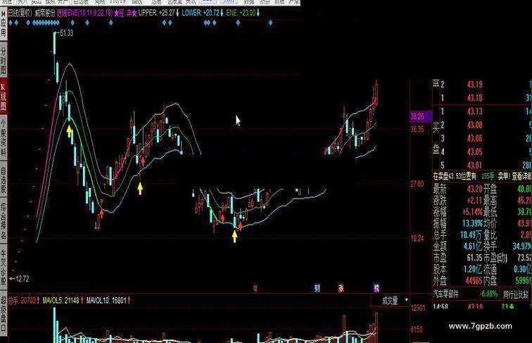 资金流入:IF(CLOSE>UPPER AND CLOSE>UPPER,UPPER,DRAWNULL),colorlimagenta,LINETHICK2;