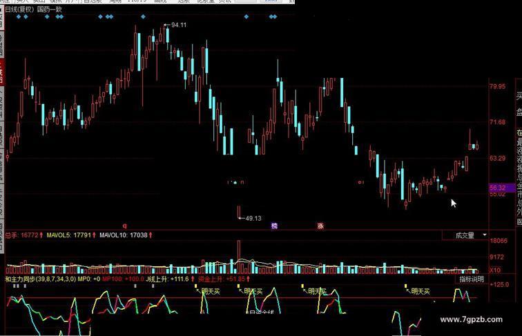 卖出:1`当绿色柱在(55%)中位线以上出现,有白色柱出现,KD交死叉前卖出。