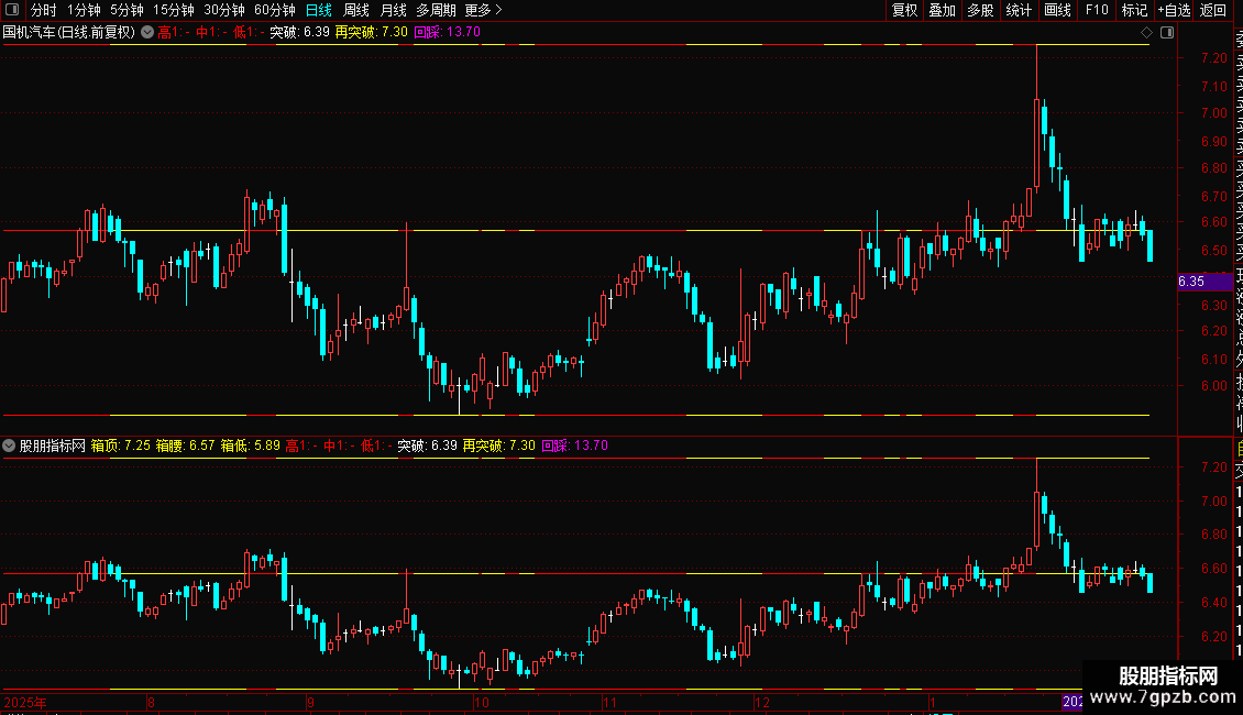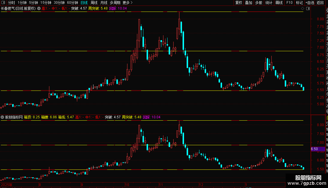 3. 特殊价位标记:根据收盘价自动计算并标记“突破”、“再突破”、“回踩”三个关键参考价位,用于观察价格对特定整数关口或结构位的测试行为。
