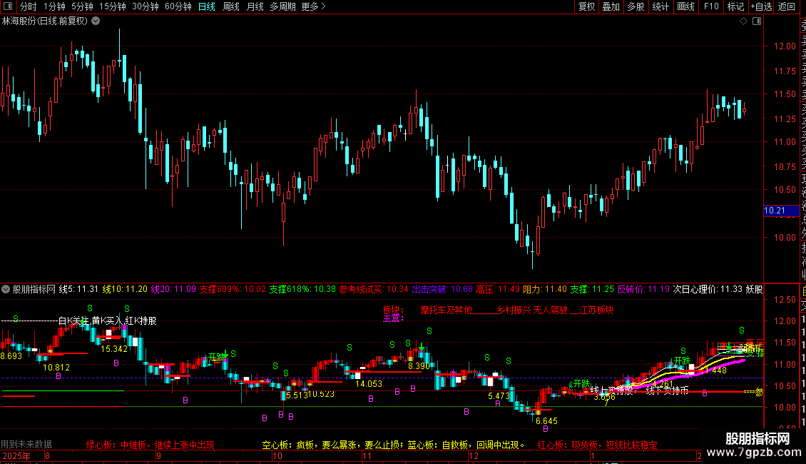 使用者应重点关注K线颜色的变化、各类“板”信号的出现位置,并结合支撑阻力线(如命运转折线)来综合判断。