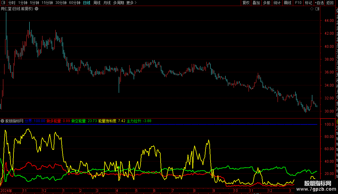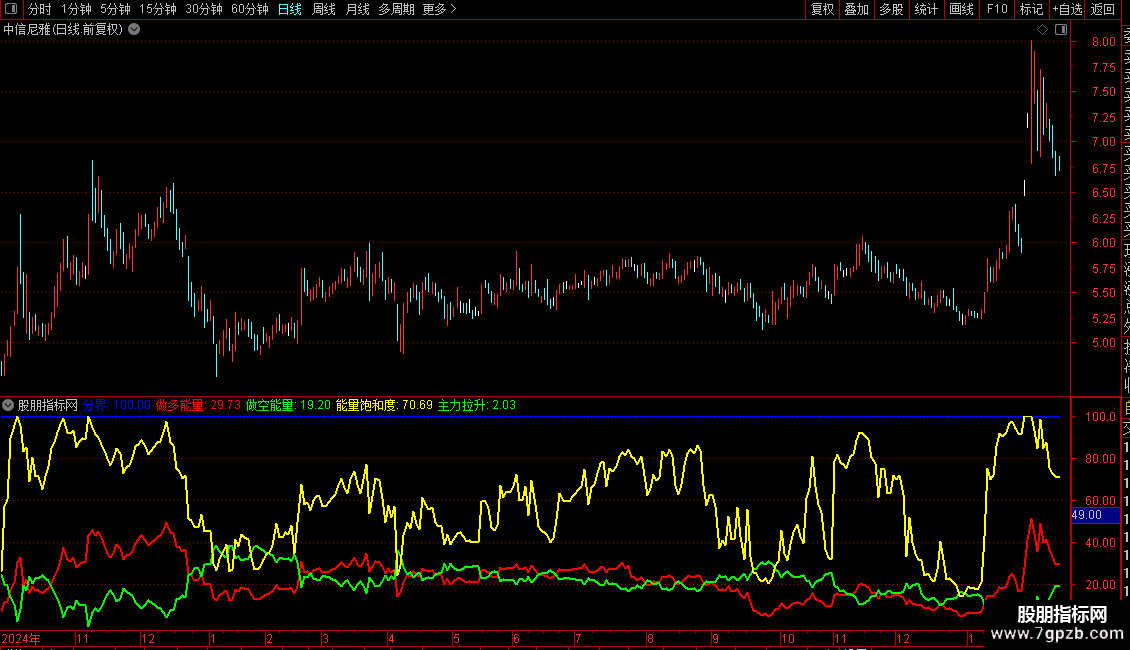 指标包含多个子指标,用于分析市场多空能量和主力行为。